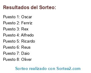 Lista de participantes: Alfredo, Fenriz, Ricardo, Oliver, Oscar, Reus, Daio, Rex.