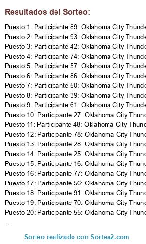 - Puesto 3: Participante 42: Oklahoma City Thunder