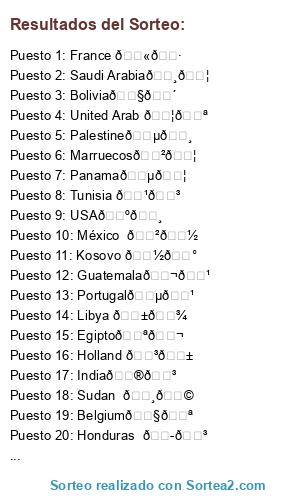 Resultados del sorteo: