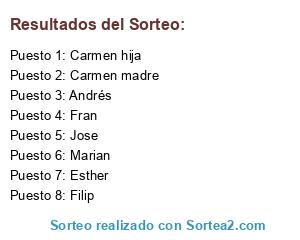 Lista de participantes: Mama, Carmen, Tere, Ángela, Germán, Noe, Patri, Eloy.