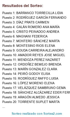- Puesto 24: RUIZ BENÍTEZ PAULA CRISTINA