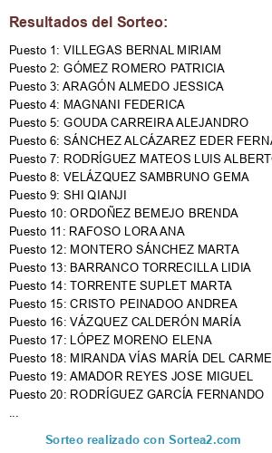 - Puesto 17: VÁZQUEZ CALDERÓN MARÍA