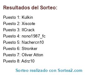 Lista de participantes: IlCrack, Oliver Atton, Stronker, Xiscote, Adrz10, nono1987_fc, Nachercn10, Kulkin.