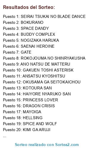 - Puesto 1: SEIRAI TSUKAI NO BLADE DANCE