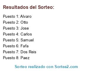 Lista de participantes: Samuel, Jose, Paez, Otto, Carlos, Alvaro, Fafa, Dos Reis.