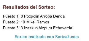 Lista de participantes: 1 Anabel Sobrino Artazcoz, 2 Arantxa Escudero Irigoyen, 3 Izaskun Aizpuru Echeverria, 4 Iraia Lopez, 5 Xabier Ameztoi Etxenike, 6 Kristina Loyarte Lopez, 7 Dani Iribarren, 8 Poxpolin Arropa Denda, 9 Pinkiman Manzoni, 10 Mikel Ramos.