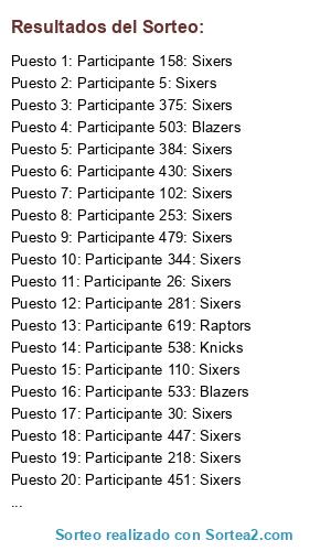 Lista de participantes: Participante 1: Sixers, Participante 2: Sixers, Participante 3: Sixers, Participante 4: Sixers, Participante 5: Sixers, Participante 6: Sixers, Participante 7: Sixers, Participante 8: Sixers, Participante 9: Sixers, Participante 10: Sixers, Participante 11: Sixers, Participante 12: Sixers, Participante 13: Sixers, Participante 14: Sixers, Participante 15: Sixers, Participante 16: Sixers, Participante 17: Sixers, Participante 18: Sixers, Participante 19: Sixers, Participante 20: Sixers, Participante 21: Sixers, Participante 22: Sixers, Participante 23: Sixers, Participante 24: Sixers, Participante 25: Sixers, Participante 26: Sixers, Participante 27: Sixers, Participante 28: Sixers, Participante 29: Sixers, Participante 30: Sixers, Participante 31: Sixers, Participante 32: Sixers, Participante 33: Sixers, Participante 34: Sixers, Participante 35: Sixers, Participante 36: Sixers, Participante 37: Sixers, Participante 38: Sixers, Participante 39: Sixers, Participante 40: Sixers, Participante 41: Sixers, Participante 42: Sixers, Participante 43: Sixers, Participante 44: Sixers, Participante 45: Sixers, Participante 46: Sixers, Participante 47: Sixers, Participante 48: Sixers, Participante 49: Sixers, Participante 50: Sixers, Participante 51: Sixers, Participante 52: Sixers, Participante 53: Sixers, Participante 54: Sixers, Participante 55: Sixers, Participante 56: Sixers, Participante 57: Sixers, Participante 58: Sixers, Participante 59: Sixers, Participante 60: Sixers, Participante 61: Sixers, Participante 62: Sixers, Participante 63: Sixers, Participante 64: Sixers, Participante 65: Sixers, Participante 66: Sixers, Participante 67: Sixers, Participante 68: Sixers, Participante 69: Sixers, Participante 70: Sixers, Participante 71: Sixers, Participante 72: Sixers, Participante 73: Sixers, Participante 74: Sixers, Participante 75: Sixers, Participante 76: Sixers, Participante 77: Sixers, Participante 78: Sixers, Participante 79: Sixers, Participante 80: Sixers, Participante 81: Sixers, Participante 82: Sixers, Participante 83: Sixers, Participante 84: Sixers, Participante 85: Sixers, Participante 86: Sixers, Participante 87: Sixers, Participante 88: Sixers, Participante 89: Sixers, Participante 90: Sixers, Participante 91: Sixers, Participante 92: Sixers, Participante 93: Sixers, Participante 94: Sixers, Participante 95: Sixers, Participante 96: Sixers, Participante 97: Sixers, Participante 98: Sixers, Participante 99: Sixers, Participante 100: Sixers, Participante 101: Sixers, Participante 102: Sixers, Participante 103: Sixers, Participante 104: Sixers, Participante 105: Sixers, Participante 106: Sixers, Participante 107: Sixers, Participante 108: Sixers, Participante 109: Sixers, Participante 110: Sixers, Participante 111: Sixers, Participante 112: Sixers, Participante 113: Sixers, Participante 114: Sixers, Participante 115: Sixers, Participante 116: Sixers, Participante 117: Sixers, Participante 118: Sixers, Participante 119: Sixers, Participante 120: Sixers, Participante 121: Sixers, Participante 122: Sixers, Participante 123: Sixers, Participante 124: Sixers, Participante 125: Sixers, Participante 126: Sixers, Participante 127: Sixers, Participante 128: Sixers, Participante 129: Sixers, Participante 130: Sixers, Participante 131: Sixers, Participante 132: Sixers, Participante 133: Sixers, Participante 134: Sixers, Participante 135: Sixers, Participante 136: Sixers, Participante 137: Sixers, Participante 138: Sixers, Participante 139: Sixers, Participante 140: Sixers, Participante 141: Sixers, Participante 142: Sixers, Participante 143: Sixers, Participante 144: Sixers, Participante 145: Sixers, Participante 146: Sixers, Participante 147: Sixers, Participante 148: Sixers, Participante 149: Sixers, Participante 150: Sixers, Participante 151: Sixers, Participante 152: Sixers, Participante 153: Sixers, Participante 154: Sixers, Participante 155: Sixers, Participante 156: Sixers, Participante 157: Sixers, Participante 158: Sixers, Participante 159: Sixers, Participante 160: Sixers, Participante 161: Sixers, Participante 162: Sixers, Participante 163: Sixers, Participante 164: Sixers, Participante 165: Sixers, Participante 166: Sixers, Participante 167: Sixers, Participante 168: Sixers, Participante 169: Sixers, Participante 170: Sixers, Participante 171: Sixers, Participante 172: Sixers, Participante 173: Sixers, Participante 174: Sixers, Participante 175: Sixers, Participante 176: Sixers, Participante 177: Sixers, Participante 178: Sixers, Participante 179: Sixers, Participante 180: Sixers, Participante 181: Sixers, Participante 182: Sixers, Participante 183: Sixers, Participante 184: Sixers, Participante 185: Sixers, Participante 186: Sixers, Participante 187: Sixers, Participante 188: Sixers, Participante 189: Sixers, Participante 190: Sixers, Participante 191: Sixers, Participante 192: Sixers, Participante 193: Sixers, Participante 194: Sixers, Participante 195: Sixers, Participante 196: Sixers, Participante 197: Sixers, Participante 198: Sixers, Participante 199: Sixers, Participante 200: Sixers, Participante 201: Sixers, Participante 202: Sixers, Participante 203: Sixers, Participante 204: Sixers, Participante 205: Sixers, Participante 206: Sixers, Participante 207: Sixers, Participante 208: Sixers, Participante 209: Sixers, Participante 210: Sixers, Participante 211: Sixers, Participante 212: Sixers, Participante 213: Sixers, Participante 214: Sixers, Participante 215: Sixers, Participante 216: Sixers, Participante 217: Sixers, Participante 218: Sixers, Participante 219: Sixers, Participante 220: Sixers, Participante 221: Sixers, Participante 222: Sixers, Participante 223: Sixers, Participante 224: Sixers, Participante 225: Sixers, Participante 226: Sixers, Participante 227: Sixers, Participante 228: Sixers, Participante 229: Sixers, Participante 230: Sixers, Participante 231: Sixers, Participante 232: Sixers, Participante 233: Sixers, Participante 234: Sixers, 