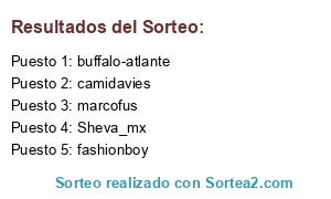 Lista de participantes: Sheva_mx, fashionboy, camidavies, buffalo-atlante, marcofus.