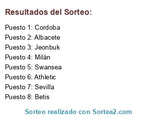 Lista de participantes: Sevilla, Albacete, Milán, Swansea, Athletic, Cordoba, Betis, Jeonbuk.