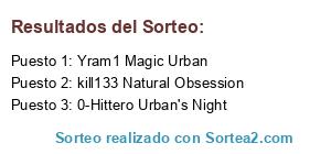 Lista de participantes: 0-UR-BFAST: 25000 pts. Urban's Night, 0-Hittero Urban's Night, Lythy Urban's Night, 0 G0RKA, kill133 Natural Obsession, Yram1 Magic Urban.