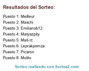 Lista de participantes: Maschi, Picaron, Molito, Mati-rc, Leprakpomza, Matyazpity, Emilianob12, Meilleur.