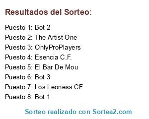 Lista de participantes: Los Leoness CF, OnlyProPlayers, El Bar De Mou, Esencia C.F., The Artist One, Bot 1, Bot 2, Bot 3.