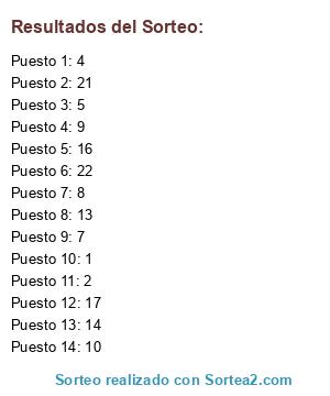 Resultados del sorteo: