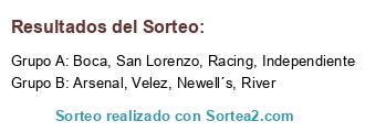 Lista de participantes: Boca, River, San Lorenzo, Independiente, Racing, Newell´s, Velez, Arsenal.
