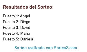 Lista de participantes: Angel, Daniela, David, Diego, María.