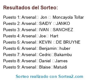 Lista de participantes: Arsenal Daniel James, Arsenal Joe Hart, Arsenal Blaise Matuidi, Arsenal Benjamin huber, Arsenal Ollie Watkins, Arsenal Cedric Bakambu, Arsenal Carlos Neva Tey, Arsenal Omar Mascarell González, Arsenal RICO HENRY, Arsenal SAIDY JANKO, Arsenal Jon Moncayola Tollar, Arsenal Mesut Özil, Arsenal IVAN SANCHEZ, Arsenal KEVIN DE BRUYNE, Arsenal HIROKI ABE, Arsenal Ike Opara, Arsenal Oussama Idrissi, Arsenal Tomáš Vaclík, Arsenal Armando Izzo, Arsenal Dani Martin.