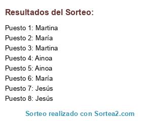 Lista de participantes: Ainoa, Ainoa, Martina, Martina, María, María, Jesús, Jesús.