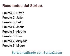Lista de participantes: Miguel, Arvydas, Alberto, Jesús, Felix, David, Julio, Dani.