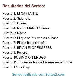 Lista de participantes: Sidancho, El que hace crossfit, El que se duerme en el baño, El que se tira de los remises en movimiento, El CANTANTE, Orseis, Nacho, BRIAN FLORESSSSSS, Pollereli, LeAboy, SIMO ON DRUGS, Martín MARIO Chiesa.