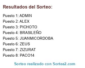 Lista de participantes: ZEUS, BRASILEÑO, ADMIN, PACO14, ZIZURAT, PICHOTO, ALEX, JUANMICORDOBA.