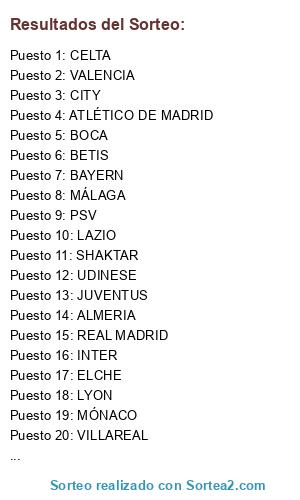 Resultados del sorteo: