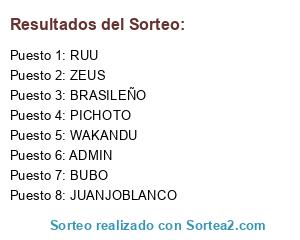 Lista de participantes: JUANJOBLANCO, BRASILEÑO, ZEUS, PICHOTO, WAKANDU, ADMIN, BUBO, RUU.