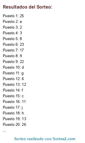 Lista de participantes: a, b, c, d, e, f, g, h, i, j, 1, 2, 3, 4, 5, 6, 7, 8, 9, 10, 11, 12, 13, 14, 15, 16, 17, 18, 19, 20, 21, 22, 23, 24, 25, 26.