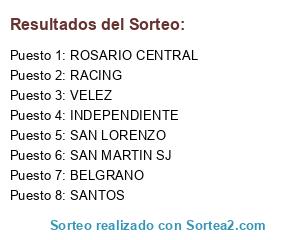 Lista de participantes: BELGRANO, INDEPENDIENTE, RACING, SAN LORENZO, SAN MARTIN SJ, VELEZ, ROSARIO CENTRAL, SANTOS.