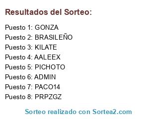 Lista de participantes: PICHOTO, PACO14, ADMIN, PRPZGZ, AALEEX, GONZA, BRASILEÑO, KILATE.