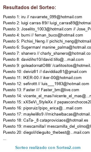 - Puesto 12: sefirottt // luis___1983@hotmail.com