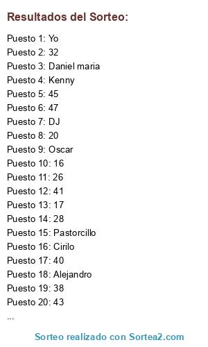 Lista de participantes: Alejandro, Edu, Cirilo, Yanez, Daniel maria, DJ, G, Americo, Kenny, 6Jas, Orozco, Pastorcillo, Oscar, Oxy, Yo, 16, 17, 18, 19, 20, 21, 22, 23, 24, 25, 26, 27, 28, 29, 30, 31, 32, 33, 34, 35, 36, 37, 38, 39, 40, 41, 42, 43, 44, 45, 46, 47, 48, 49, 50.