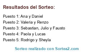 Lista de participantes: Ana y Daniel, Rodrigo y Sheyla, Paola y Lucas, Valeria y Renzo, Sebastian, Julio y Fausto.