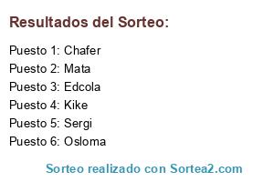 Lista de participantes: Osloma, Sergi, Chafer, Edcola, Kike, Mata.