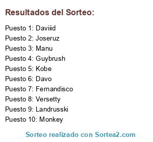 Lista de participantes: Kobe, Landrusski, Davo, Joseruz, Guybrush, Monkey, Fernandisco, Versetty, Daviiid, Manu.