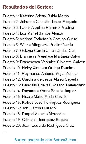 - Puesto 14: Dayanara Ysora Peralta Jáquez