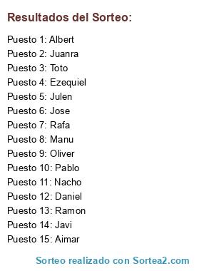 Resultados del sorteo: