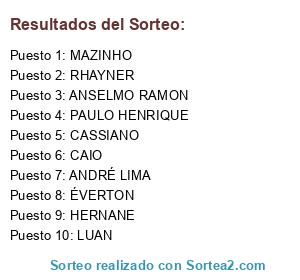 Lista de participantes: HERNANE, LUAN, CASSIANO, ÉVERTON, ANSELMO RAMON, ANDRÉ LIMA, CAIO, PAULO HENRIQUE, MAZINHO, RHAYNER.