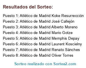Lista de participantes: Atlético de Madrid Miguel Ángel Moya, Atlético de Madrid Marcel Schmelzer, Atlético de Madrid Dani Alves, Atlético de Madrid Laurent Koscielny, Atlético de Madrid Alberto Moreno, Atlético de Madrid Mario (cedido Juve) Mandzukic, Atlético de Madrid Oguzhan Ozyakup, Atlético de Madrid Mateo Musacchio, Atlético de Madrid Renato Sánches, Atlético de Madrid José Callejón, Atlético de Madrid Oliver Torres, Atlético de Madrid Giorgio Chiellini, Atlético de Madrid Mario Gaspar, Atlético de Madrid Anthony Martial, Atlético de Madrid Jesus Corona, Atlético de Madrid Mathieu Valbuena, Atlético de Madrid Roberto Firmino, Atlético de Madrid Koke Resurrección, Atlético de Madrid Mariano Díaz, Atlético de Madrid Memphis Depay, Atlético de Madrid Mario Gotze, Atlético de Madrid Thibaut Courtois, Atlético de Madrid Moussa Marega.