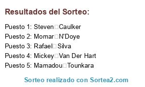 Lista de participantes: Mickey Van Der Hart, Hayden White, Steven Caulker, Terence Kongolo, Rafael Silva, Mamadou Tounkara, Momar N'Doye.