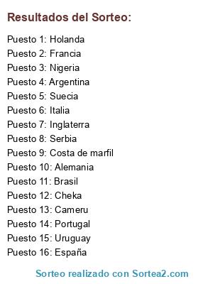 Resultados del sorteo: