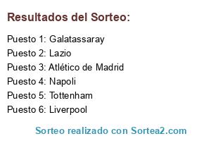 Lista de participantes: Napoli, Lazio, Tottenham, Liverpool, Galatassaray, Atlético de Madrid, .