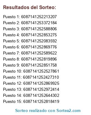 Resultados del sorteo: