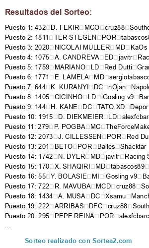 Accesibilidad del sorteo: El sorteo es público. Todo el mundo podrá acceder a él desde el listado de sorteos guardados.