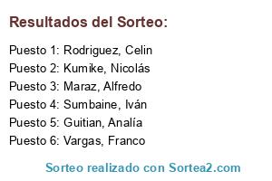 Lista de participantes: Kumike, Nicolás, Guitian, Analía, Maraz, Alfredo, Rodriguez, Celin, Sumbaine, Iván, Vargas, Franco.