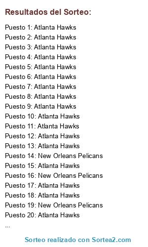 Lista de participantes: New Orleans Pelicans, New Orleans Pelicans, New Orleans Pelicans, New Orleans Pelicans, New Orleans Pelicans, New Orleans Pelicans, New Orleans Pelicans, New Orleans Pelicans, New Orleans Pelicans, New Orleans Pelicans, New Orleans Pelicans, New Orleans Pelicans, New Orleans Pelicans, New Orleans Pelicans, New Orleans Pelicans, New Orleans Pelicans, New Orleans Pelicans, New Orleans Pelicans, New Orleans Pelicans, New Orleans Pelicans, New Orleans Pelicans, New Orleans Pelicans, New Orleans Pelicans, New Orleans Pelicans, New Orleans Pelicans, New Orleans Pelicans, New Orleans Pelicans, New Orleans Pelicans, New Orleans Pelicans, New Orleans Pelicans, New Orleans Pelicans, New Orleans Pelicans, New Orleans Pelicans, New Orleans Pelicans, New Orleans Pelicans, New Orleans Pelicans, New Orleans Pelicans, New Orleans Pelicans, New Orleans Pelicans, New Orleans Pelicans, New Orleans Pelicans, New Orleans Pelicans, New Orleans Pelicans, New Orleans Pelicans, New Orleans Pelicans, New Orleans Pelicans, New Orleans Pelicans, New Orleans Pelicans, New Orleans Pelicans, New Orleans Pelicans, New Orleans Pelicans, New Orleans Pelicans, New Orleans Pelicans, New Orleans Pelicans, New Orleans Pelicans, New Orleans Pelicans, New Orleans Pelicans, New Orleans Pelicans, New Orleans Pelicans, New Orleans Pelicans, New Orleans Pelicans, New Orleans Pelicans, New Orleans Pelicans, New Orleans Pelicans, New Orleans Pelicans, New Orleans Pelicans, New Orleans Pelicans, New Orleans Pelicans, New Orleans Pelicans, New Orleans Pelicans, New Orleans Pelicans, New Orleans Pelicans, New Orleans Pelicans, New Orleans Pelicans, New Orleans Pelicans, New Orleans Pelicans, New Orleans Pelicans, New Orleans Pelicans, New Orleans Pelicans, New Orleans Pelicans, New Orleans Pelicans, New Orleans Pelicans, New Orleans Pelicans, New Orleans Pelicans, New Orleans Pelicans, New Orleans Pelicans, New Orleans Pelicans, New Orleans Pelicans, New Orleans Pelicans, New Orleans Pelicans, New Orleans Pelicans, New Orleans Pelicans, New Orleans Pelicans, New Orleans Pelicans, New Orleans Pelicans, New Orleans Pelicans, New Orleans Pelicans, New Orleans Pelicans, New Orleans Pelicans, New Orleans Pelicans, New Orleans Pelicans, New Orleans Pelicans, New Orleans Pelicans, New Orleans Pelicans, New Orleans Pelicans, New Orleans Pelicans, New Orleans Pelicans, New Orleans Pelicans, New Orleans Pelicans, New Orleans Pelicans, New Orleans Pelicans, New Orleans Pelicans, Atlanta Hawks, Atlanta Hawks, Atlanta Hawks, Atlanta Hawks, Atlanta Hawks, Atlanta Hawks, Atlanta Hawks, Atlanta Hawks, Atlanta Hawks, Atlanta Hawks, Atlanta Hawks, Atlanta Hawks, Atlanta Hawks, Atlanta Hawks, Atlanta Hawks, Atlanta Hawks, Atlanta Hawks, Atlanta Hawks, Atlanta Hawks, Atlanta Hawks, Atlanta Hawks, Atlanta Hawks, Atlanta Hawks, Atlanta Hawks, Atlanta Hawks, Atlanta Hawks, Atlanta Hawks, Atlanta Hawks, Atlanta Hawks, Atlanta Hawks, Atlanta Hawks, Atlanta Hawks, Atlanta Hawks, Atlanta Hawks, Atlanta Hawks, Atlanta Hawks, Atlanta Hawks, Atlanta Hawks, Atlanta Hawks, Atlanta Hawks, Atlanta Hawks, Atlanta Hawks, Atlanta Hawks, Atlanta Hawks, Atlanta Hawks, Atlanta Hawks, Atlanta Hawks, Atlanta Hawks, Atlanta Hawks, Atlanta Hawks, Atlanta Hawks, Atlanta Hawks, Atlanta Hawks, Atlanta Hawks, Atlanta Hawks, Atlanta Hawks, Atlanta Hawks, Atlanta Hawks, Atlanta Hawks, Atlanta Hawks, Atlanta Hawks, Atlanta Hawks, Atlanta Hawks, Atlanta Hawks, Atlanta Hawks, Atlanta Hawks, Atlanta Hawks, Atlanta Hawks, Atlanta Hawks, Atlanta Hawks, Atlanta Hawks, Atlanta Hawks, Atlanta Hawks, Atlanta Hawks, Atlanta Hawks, Atlanta Hawks, Atlanta Hawks, Atlanta Hawks, Atlanta Hawks, Atlanta Hawks, Atlanta Hawks, Atlanta Hawks, Atlanta Hawks, Atlanta Hawks, Atlanta Hawks, Atlanta Hawks, Atlanta Hawks, Atlanta Hawks, Atlanta Hawks, Atlanta Hawks, Atlanta Hawks, Atlanta Hawks, Atlanta Hawks, Atlanta Hawks, Atlanta Hawks, Atlanta Hawks, Atlanta Hawks, Atlanta Hawks, Atlanta Hawks, Atlanta Hawks, Atlanta Hawks, Atlanta Hawks, Atlanta Hawks, Atlanta Hawks, Atlanta Hawks, Atlanta Hawks, Atlanta Hawks, Atlanta Hawks, Atlanta Hawks, Atlanta Hawks, Atlanta Hawks, Atlanta Hawks, Atlanta Hawks, Atlanta Hawks, Atlanta Hawks, Atlanta Hawks, Atlanta Hawks, Atlanta Hawks, Atlanta Hawks, Atlanta Hawks, Atlanta Hawks, Atlanta Hawks, Atlanta Hawks, Atlanta Hawks, Atlanta Hawks, Atlanta Hawks, Atlanta Hawks, Atlanta Hawks, Atlanta Hawks, Atlanta Hawks, Atlanta Hawks, Atlanta Hawks, Atlanta Hawks, Atlanta Hawks, Atlanta Hawks, Atlanta Hawks, Atlanta Hawks, Atlanta Hawks, Atlanta Hawks, Atlanta Hawks, Atlanta Hawks, Atlanta Hawks, Atlanta Hawks, Atlanta Hawks, Atlanta Hawks, Atlanta Hawks, Atlanta Hawks, Atlanta Hawks, Atlanta Hawks, Atlanta Hawks, Atlanta Hawks, Atlanta Hawks, Atlanta Hawks, Atlanta Hawks, Atlanta Hawks, Atlanta Hawks, Atlanta Hawks, Atlanta Hawks, Atlanta Hawks, Atlanta Hawks, Atlanta Hawks, Atlanta Hawks, Atlanta Hawks, Atlanta Hawks, Atlanta Hawks, Atlanta Hawks, Atlanta Hawks, Atlanta Hawks, Atlanta Hawks, Atlanta Hawks, Atlanta Hawks, Atlanta Hawks, Atlanta Hawks, Atlanta Hawks, Atlanta Hawks, Atlanta Hawks, Atlanta Hawks, Atlanta Hawks, Atlanta Hawks, Atlanta Hawks, Atlanta Hawks, Atlanta Hawks, Atlanta Hawks, Atlanta Hawks, Atlanta Hawks, Atlanta Hawks, Atlanta Hawks, Atlanta Hawks, Atlanta Hawks, Atlanta Hawks, Atlanta Hawks, Atlanta Hawks, Atlanta Hawks, Atlanta Hawks, Atlanta Hawks, Atlanta Hawks, Atlanta Hawks, Atlanta Hawks, Atlanta Hawks, Atlanta Hawks, Atlanta Hawks, Atlanta Hawks, Atlanta Hawks, Atlanta Hawks, Atlanta Hawks, Atlanta Hawks, Atlanta Hawks, Atlanta Hawks, Atlanta Hawks, Atlanta Hawks, Atlanta Hawks, Atlanta Hawks, Atlanta Hawks, Atlanta Hawks, Atlanta Hawks, Atlanta Hawks, Atlanta Hawks, Atlanta Hawks, Atlanta Hawks, Atlanta Hawks, Atlanta Hawks, Atlanta Hawks, Atlanta Hawks, Atlanta Hawks, Atlanta Hawks, Atlanta Hawks, Atlanta Hawks, Atlanta Hawks, Atlanta Hawks, Atlanta Hawks, Atlanta Hawks, Atlanta Hawks, Atlanta Hawks, Atlanta Hawks, At