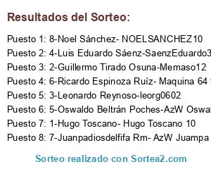 - Puesto 1: 8-Noel Sánchez- NOELSANCHEZ10