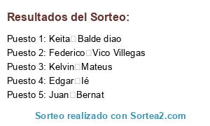 Resultados del sorteo: