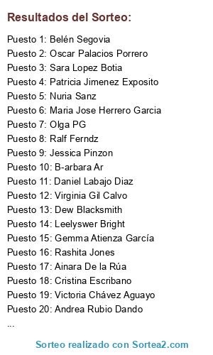 Lista de participantes: Jen Fer, Vanessa Silvano, Anita Laullon, Silvia Elvira Garcia, Vanessa Canseco Gimeno, Sandra Sandrilu, Santiago Cuervo Baños, Jorge Gomera, Ichi Pra Pri, B-arbara Ar, Alba Yebenes Centenera, Soraya Carralero Camacho, Rebe FC, Sheila Plaza, Jose Julian Escudero, Africa Saez Chamizo, Oscar Palacios Porrero, Carol Spiaggiaemare, Jose Castro Notario, Susana Chuska, Nuria Sanz, Patricia Jimenez Exposito, Olga PG, Gemma Atienza García, Gema Garcia, BeiTa Cid M, Maria Jose Herrero Garcia, Vanesa Miranda, Laura Acosta Ruiz, Maria Quiros Arranz, David Verdes Galán, Victoria Chávez Aguayo, Patricia Corrochano, Daniel Labajo Diaz, Patricia Rodriguez Sanz, Penelope Sanz, Sandra Fominaya Menendez, Tamara Gil, Paqui Mudriguez, Laura Martin, Andrea Rubio Dando, Almudena M Blanco, Nere AR, Esther Torrecilla Zarco, Laetitia Goa, Vanesa Agustin Navarro, Ana Fernández, Paola Bachiller, Evelyn Espí Romero, Chony Morena, Patricia Barbosa, Raquel Benitez, Miryam Gonzalez Medina, Belén Segovia, Tamara Lj, Nady Morales, Isa S Torres, Óscar Vidueira Torres, Carolina Llorente Gutierrez, Sara Gómez Velázquez, Carolina Arroyo Romero, Laura Escobar, Santiago Mercado Blazquez, Cristina Escribano, Jessica Pinzon, Carmen Farré, Montesclaros Allende Rodríguez, Felicia Ruben, Yohanita Paravisini Herbas, Marta Jimenez, Ioana Toroc, Ralf Ferndz, Laura Xerry, Patricia Gato Oderiz, Irene Chinarro, Pascual David Fernandez Ballestrin, Alexandra Yo, Gema Montañes Gamero, Leidy Calvo, Virginia Laiz, Elisangel Marques, Marisol Fernandez Terciado, Paloma Acevedo, Rubén Sánchez, Noelia Garcia Diez, Rodrigo Muñoz Garcia, Sara Lopez Botia, Ainara De la Rúa, David Mena Montilla, Gema Alonso López, Lorena Garcia Bermudez, Coral Rubio, Paloma Fernández Rodríguez, Gema Ramos Martínez, Andrea Roxana, Mar Redondo Gomez, Leelyswer Bright, Miguel Martín Rodríguez, Sergio CM, Marisa Martín, Rashita Jones, Neme Berges, Almudena Castilla Serrano, Dew Blacksmith, Miriam Carrasco, Beatriz Molina Romero, Lucia Rodriguez Rodriguez, Macarena Garcia Melguizo, Beatriz Calle, Sandra Bardo, Sandra Camacho, Sara De La Torre, Maripaz Jimenez Martin, Maria Chapela, Sergio Laguarda, Desiree Martinez, Virginia Gil Calvo.