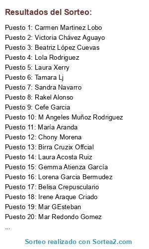 Lista de participantes: Irene Chinarro, Chony Morena, Santiago Cuervo Baños, Vanessa Canseco Gimeno, Esther Torrecilla Zarco, Cefe Garcia, Susanita Alexandra, Alexandra Yo, Daniel Labajo Diaz, Isabel Navarro Gonzalo, Nuria Ponce Ponst, Patricia Jimenez Exposito, Almudena Bermudez Benitez, Victoria Chávez Aguayo, Marisa Martín, Lorena Garcia Bermudez, Ioana Toroc, Oscar Palacios Porrero, Veronica Viñuelas Julio, Patricia Garcia, Sandra Bardo, Cristina Torresfuentes, Gemma Atienza García, M Angeles Muñoz Rodriguez, Vanessa Perez Segovia, Ana Fernández, Paqui Mudriguez, Sandra Sandrilu, Tamara Lj, Sandra Fominaya Menendez, Penelope Sanz, Ingrid PD, Almudena Castilla Serrano, Mar Redondo Gomez, Birra Cruzix Offcial, Andrea Roxana, Maria Jose Carnicero Leon, Silvia Durán, Marisol Fernandez Terciado, Coral Rubio, Carmen Martinez Lobo, Carolina Arroyo Romero, Pilar Leon, Cris Almenar Villalba, Ele Fernández, Rachel Mills, Estefania Rivero Diaz, BeiTa Cid M, Verónica Peña, María Esther Rodríguez Ramos, Anabel Crespo Caro, Lola Rodriguez, Laura Escobar, Beatriz López Cuevas, Soraya Carralero Camacho, Sandra Navarro, Noelia Martinez, Omayra Martín, Isabel Perez Saez, Irene Araque Criado, Laura Xerry, María Aranda, Yohanita Paravisini Herbas, Mar GEsteban, Miryam Gonzalez Medina, Esther V Mar, Patricia Martin Blazquez, María Miguelañez, Araceli Vega Cruz, Laura Acosta Ruiz, Sandra Tadeo, Montesclaros Allende Rodríguez, Iria de la Fuente, Rakel Alonso, Lorena Medina, Marta Moreno López, Vanesa Agustin Navarro, Estefania Galan Vicente, Elena VJ, Noemí Garrido, Alba Alecliba, Miguel Martín Rodríguez, Noelia García Barba, Maribel Esteban, Melania Rubio Ibañez, Alberto Sanchez, Beatriz Millan Antolin, Elisangel Marques, Iva Georgieva Ivanova, Belisa Crepusculario.