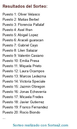 Lista de participantes: Valentina Águila, Federico Alvarez, Josue Barciocco, Rocio Biondo, Axel Ifran, Milagros Lazarte, Joaquin Leder, Marcos Ledezma, Constanza Miqueo, Florencia Pallalaf, Jazmin Obregon, Emilia Presa, Ariel Sejas, Zulmaister Rocio, Florencia Barberis, Matias Berbel, Valentin Casiano, Gabriel Cayo, Gabriel Chiappe, Jonas Echeverria, Franco Fernandez, Micaela Fredes, Araceli guaracan, Javier Gutierrez, Dante Lezcano, Abigail Lopez, Laura Ocampos, Miquela Prieto, Lilen Salazar, Victoria Speciale, Oliver Velasco.